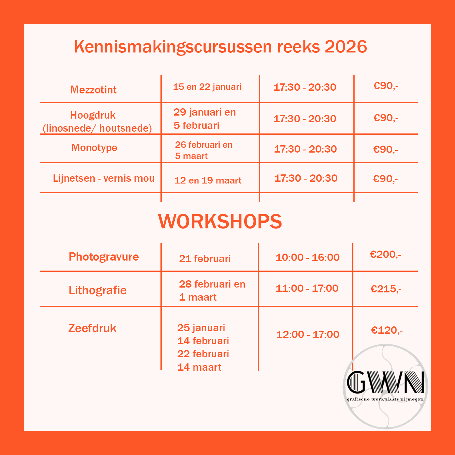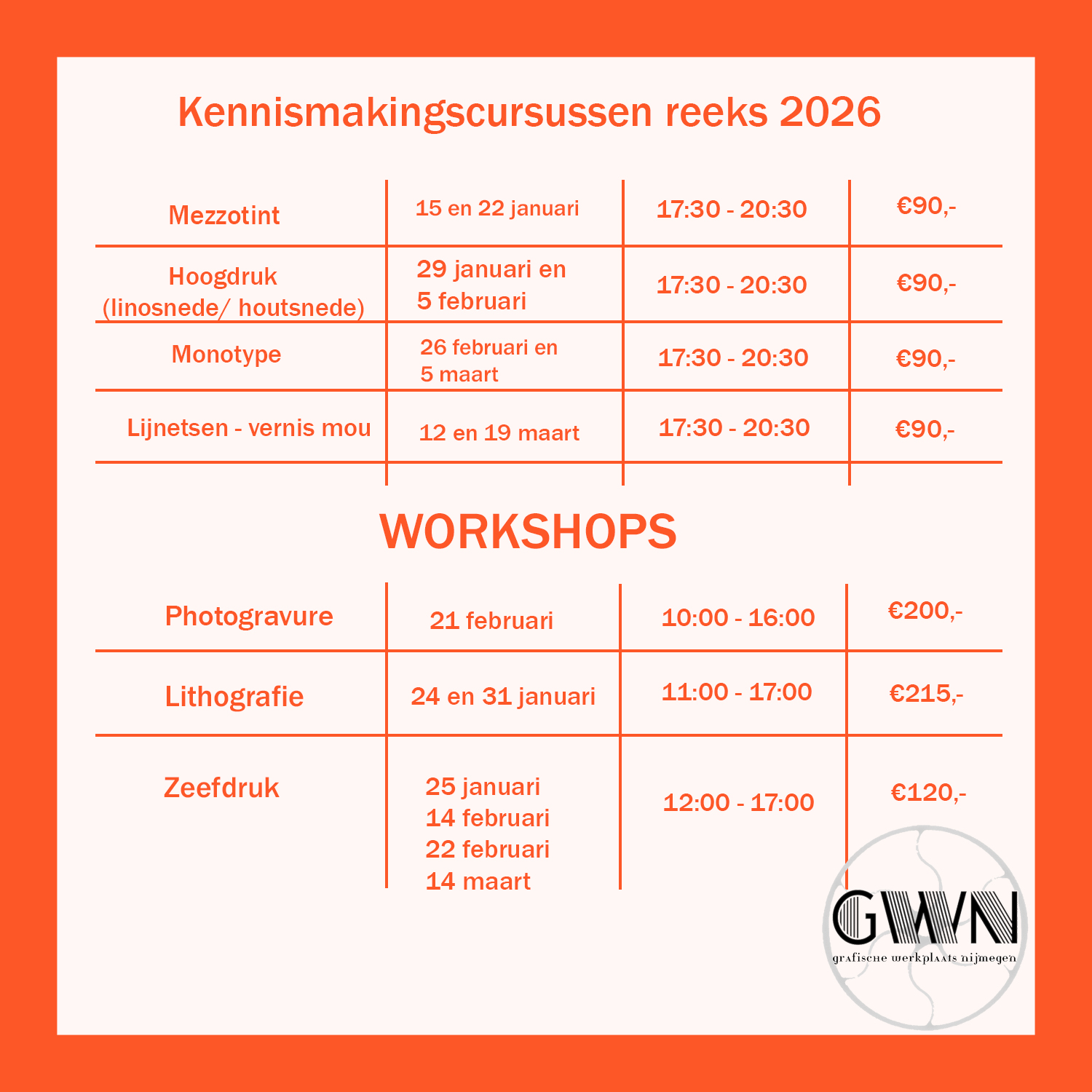 Heb jij een hart voor grafiek, ben je bekend met etsen, zeefdrukken, linosnedes of andere druktechnieken en zou je graag op vaste basis een plek willen hebben om te werken en te drukken? Word dan huurder van de Grafische Werkplaats Nijmegen! Je kunt zelfstandig gebruikmaken van de werkplaats en je wordt onderdeel van ons team dat bestaat uit 5 gepassioneerde grafici.